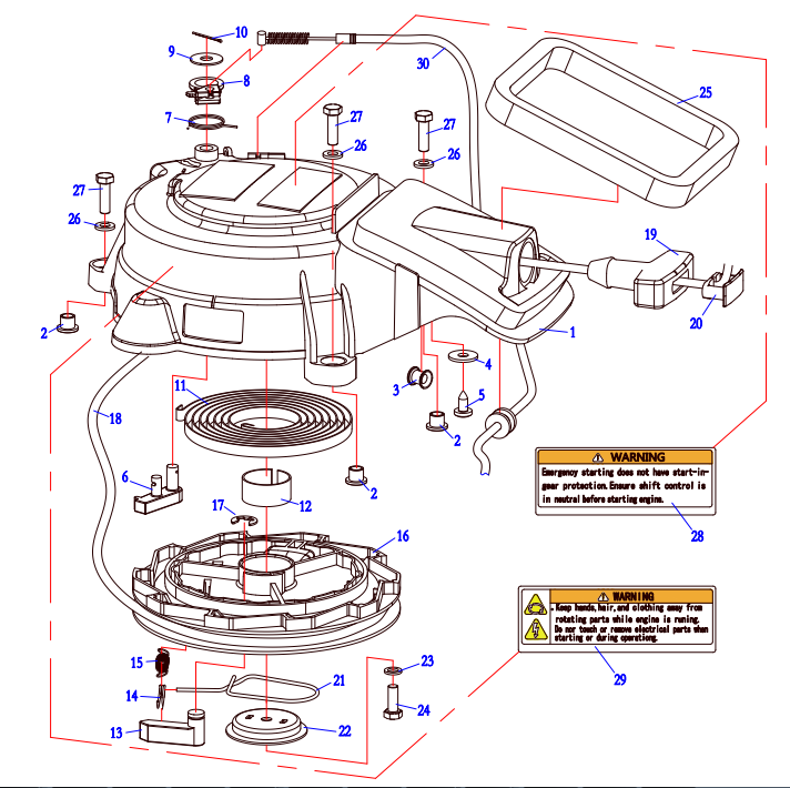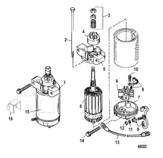 Компоненты электрического стартера 2-х тактного ПЛМ MERCURY Jet 25 Серийный номер от 0N088578 и выше