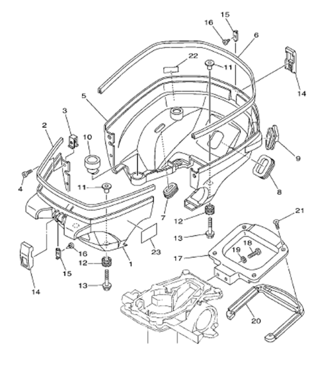 Задний обтекатель, замок в сборе 4-Х ТАКТНОГО ПЛМ MERCURY 135 Серийный номер от 1B381712 до 1B517158