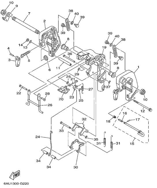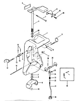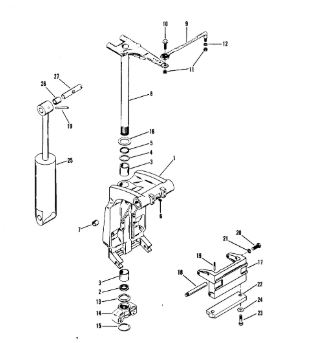 Поворотный кронштейн (Часть 1) 2-х тактного ПЛМ MERCURY 40 M Серийный номер от 00P017000 до 0P325499
