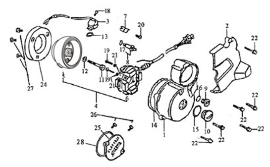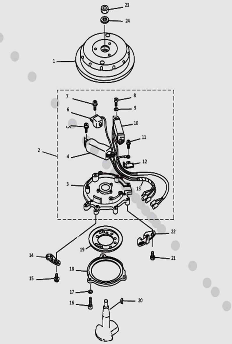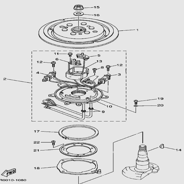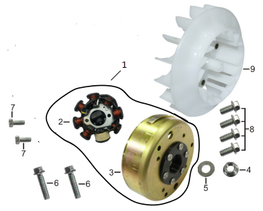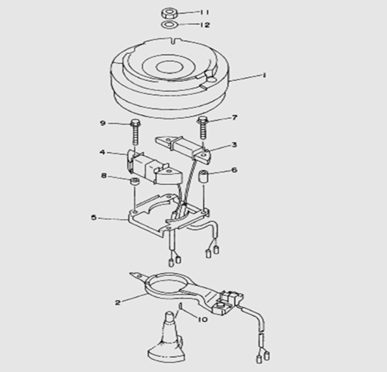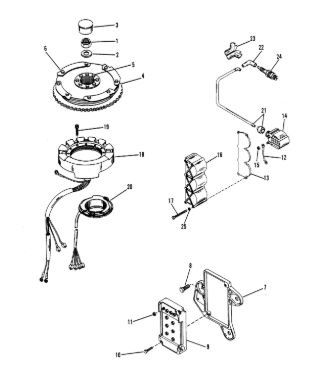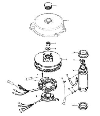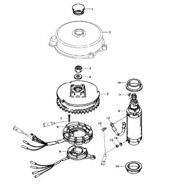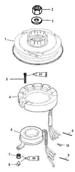 Маховик и статор (электрический) 2-Х ТАКТНОГО ПЛМ MERCURY 50EO Серийный номер от 9973100 до 0P016999
