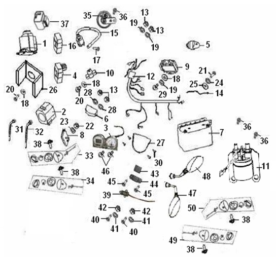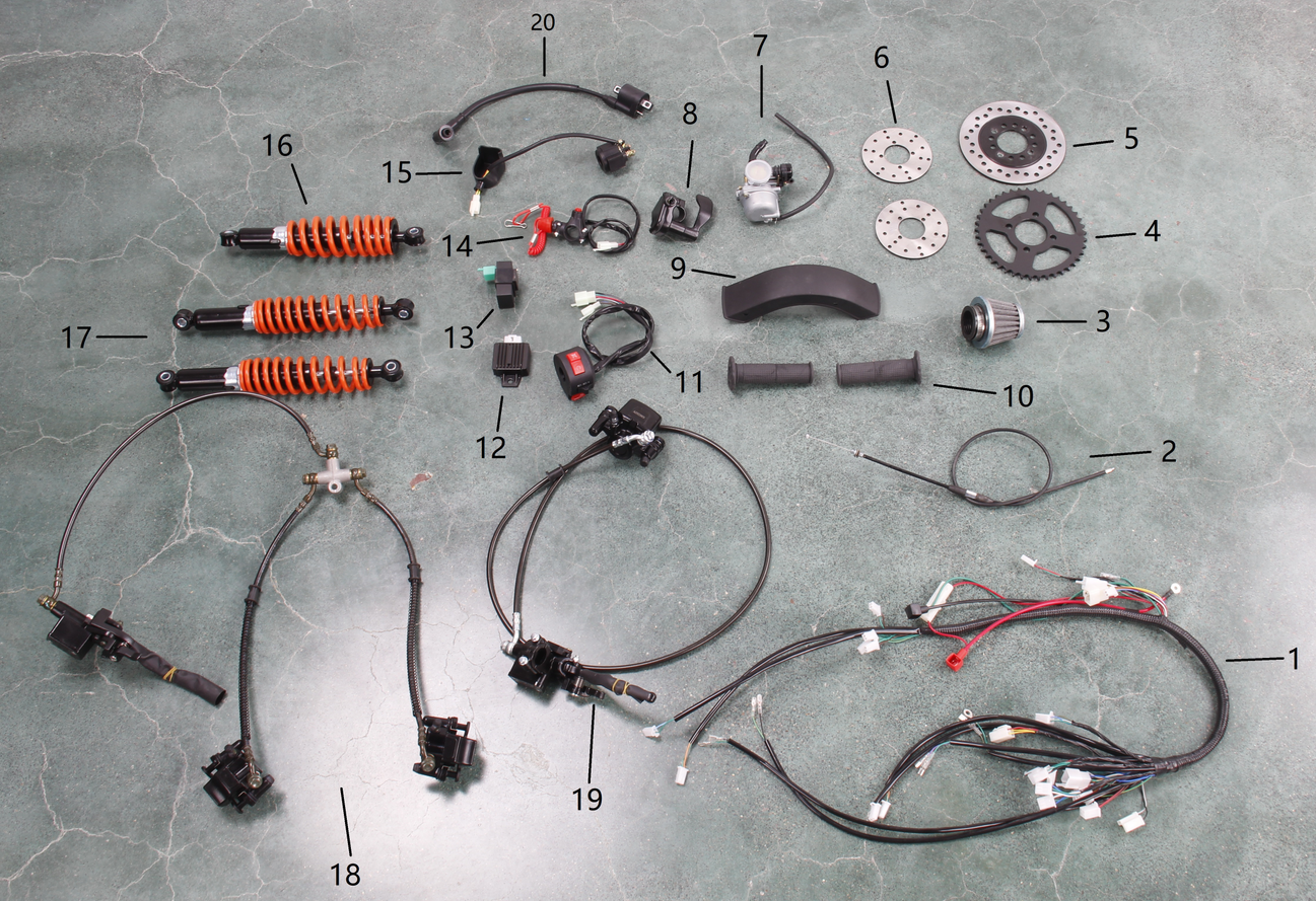 Электронная система + тормозная система + мелкие детали КВАДРОЦИКЛА GBM MAVERICK 222 (GERMAN SERIES)