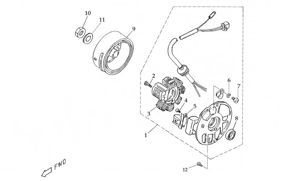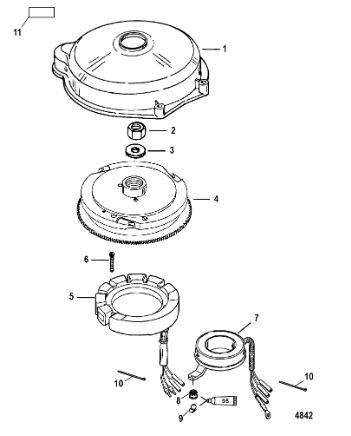 Маховик и статор (электрический) 2-Х ТАКТНОГО ПЛМ MERCURY 60 Серийный номер от 00G760300 до 0T979999