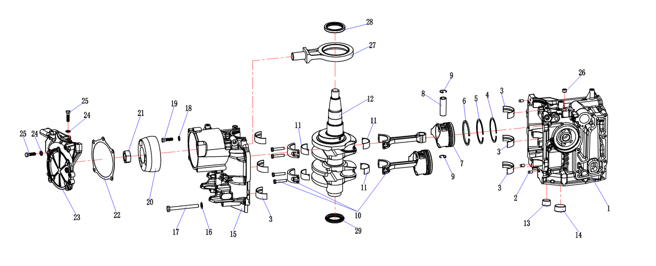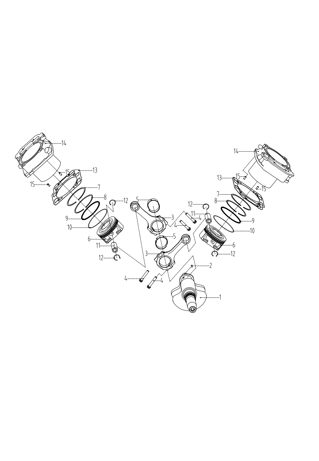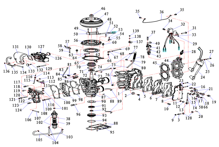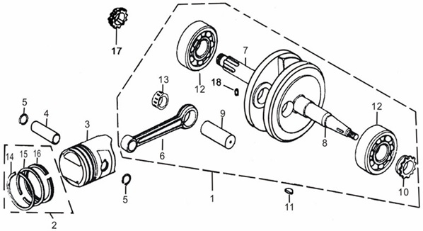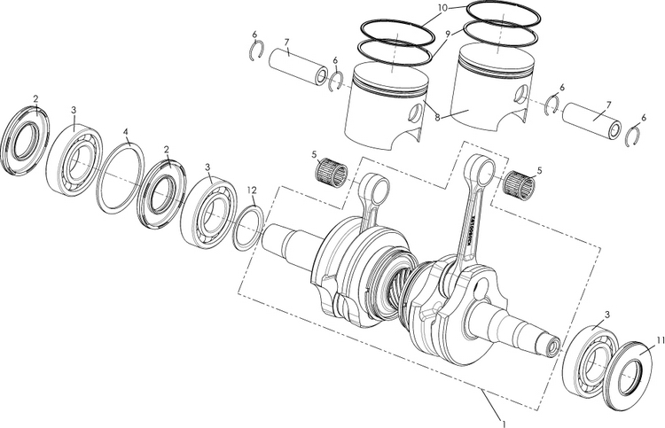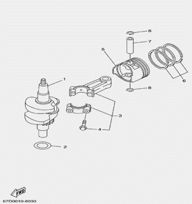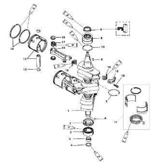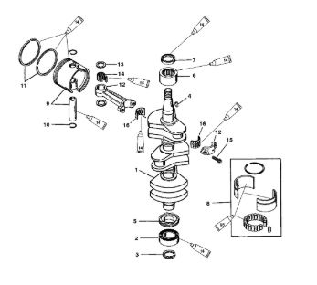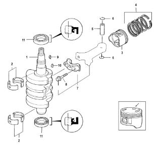 Коленчатый вал, поршни и шатуны 2-х тактного ПЛМ MERCURY 30 M Серийный номер от 0N001875 до 0N055504