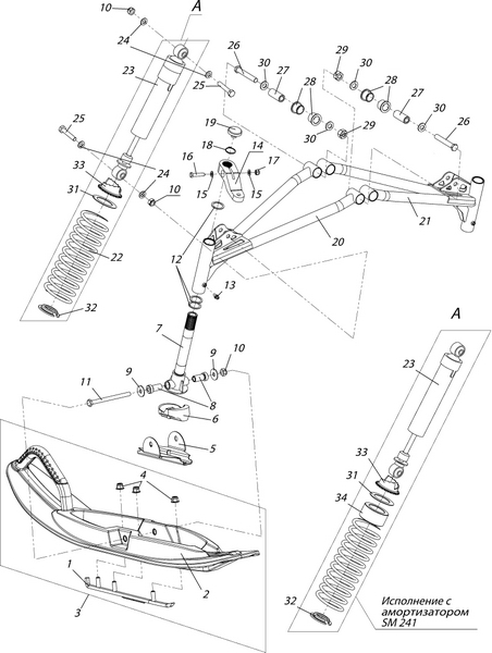 Подвеска передняя и лыжа для М10000010-01 для СММ РЫБИНКА M10000010-01 (ВЫПУСК С 09.2012 ПО 10.2013)