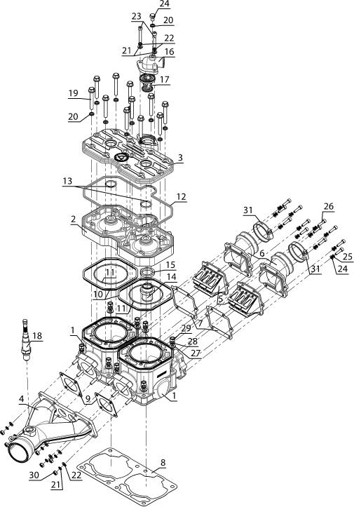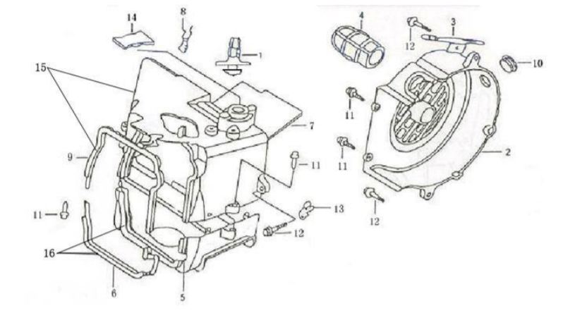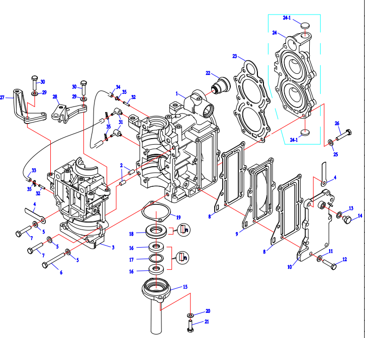 Комплектующие для прокладок двигателя 2-Х ТАКТНОГО ПЛМ MERCURY 4 M Серийный номер от 0P401000 и выше
