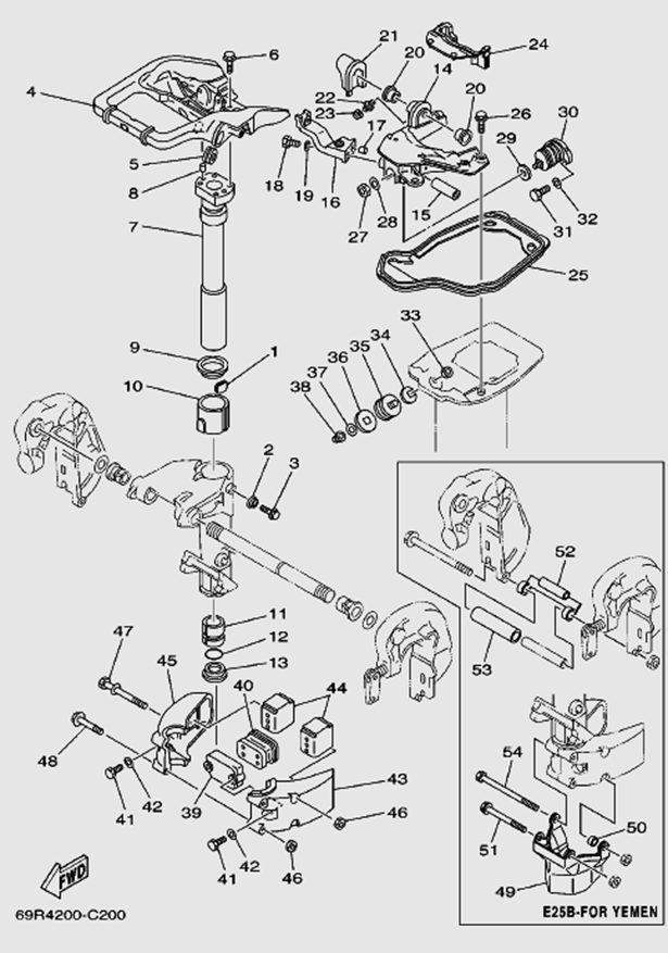 Компоненты гидроподъема (Часть 1) 4-Х ТАКТНОГО ПЛМ MERCURY 40 Серийный номер от 0P153500 до 0P400999