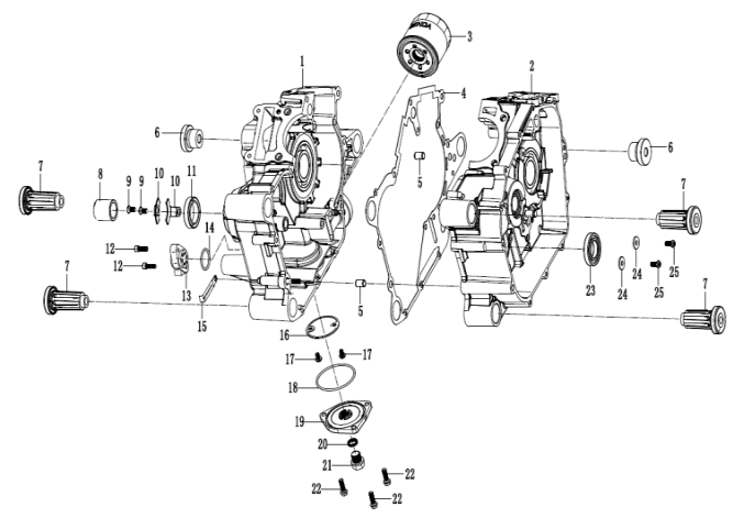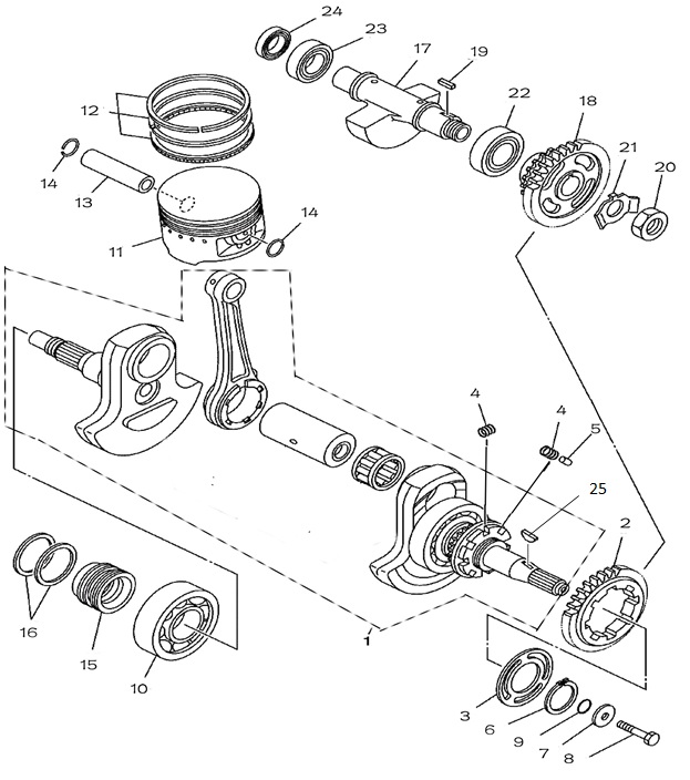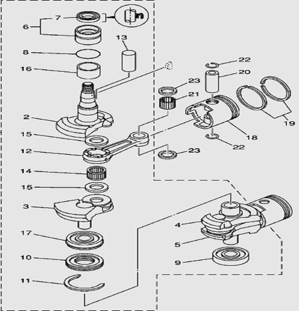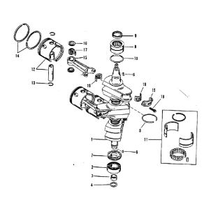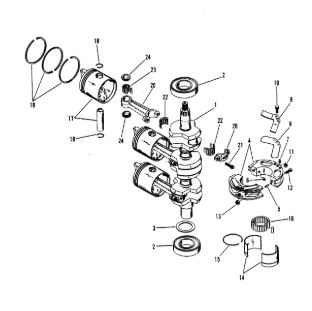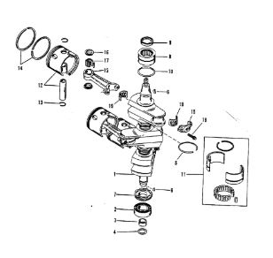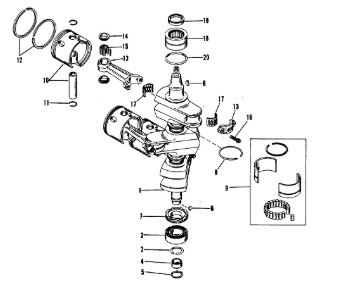Коленчатый вал, поршни и шатуны 2-х тактного ПЛМ MERCURY 25 М Серийный номер от 0N018456 до 0N055504