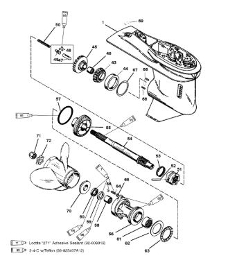 Корпус шестерни (приводной вал 2.31:1) 2-Х ТАКТНОГО ПЛМ MERCURY 75 Серийный номер от 1B000000 и выше