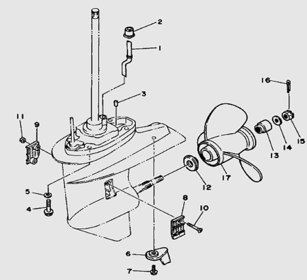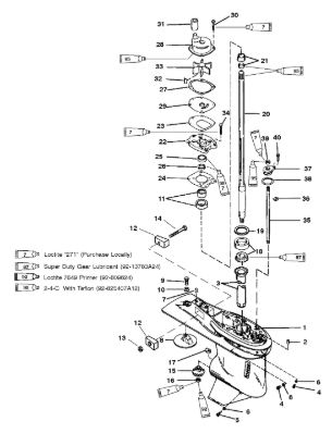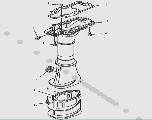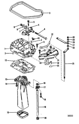 Корпус карданного вала, редуктор 2-х тактного ПЛМ MERCURY 5 M Серийный номер от 0P017000 до 0P400999