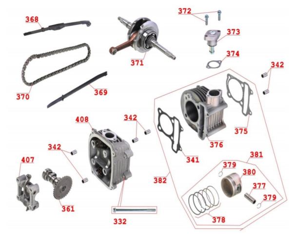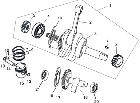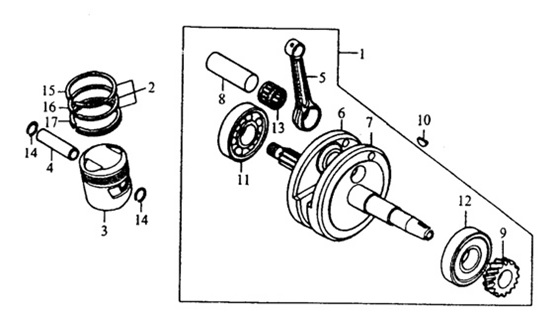 Коленчатый вал, поршни и шатуны 2-Х ТАКТНОГО ПЛМ MERCURY 50EO Серийный номер от 0P017000 до 0P325499