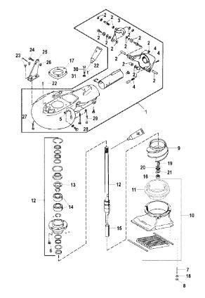 Компоненты гидроподъема (Часть 1) 4-Х ТАКТНОГО ПЛМ MERCURY 30 Серийный номер от 0P153500 до 0P400999