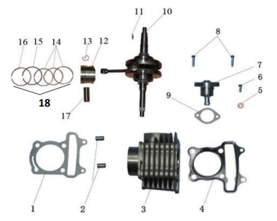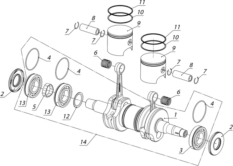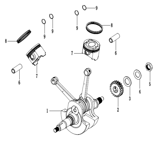 Коленчатый вал, поршни и шатуны 2-х тактного ПЛМ MERCURY 9.9 M TMC Серийный номер от 0N059858 и выше