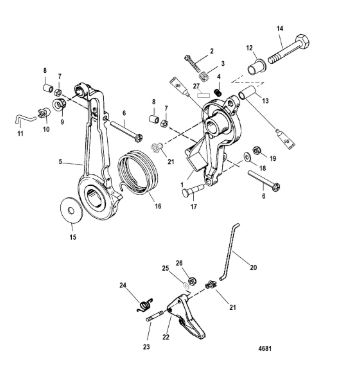 Компоненты ручки переключения передач 4-Х ТАКТНОГО ПЛМ MERCURY 135 Серийный номер от 0P514869 и выше