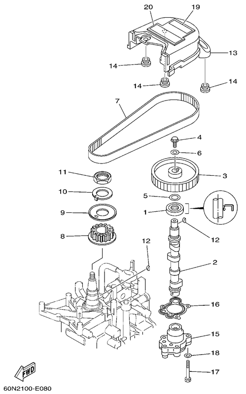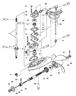 Компоненты водяного насоса двигателя 2-х тактного ПЛМ MERCURY 25 М Серийный номер от 0N055505 и выше