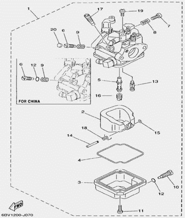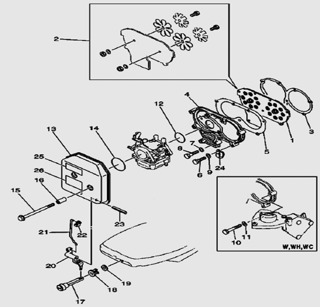 Карбюратор и пластина аттенюатора 2-Х ТАКТНОГО ПЛМ MERCURY 75 Серийный номер от 0A996142 до 0B240450