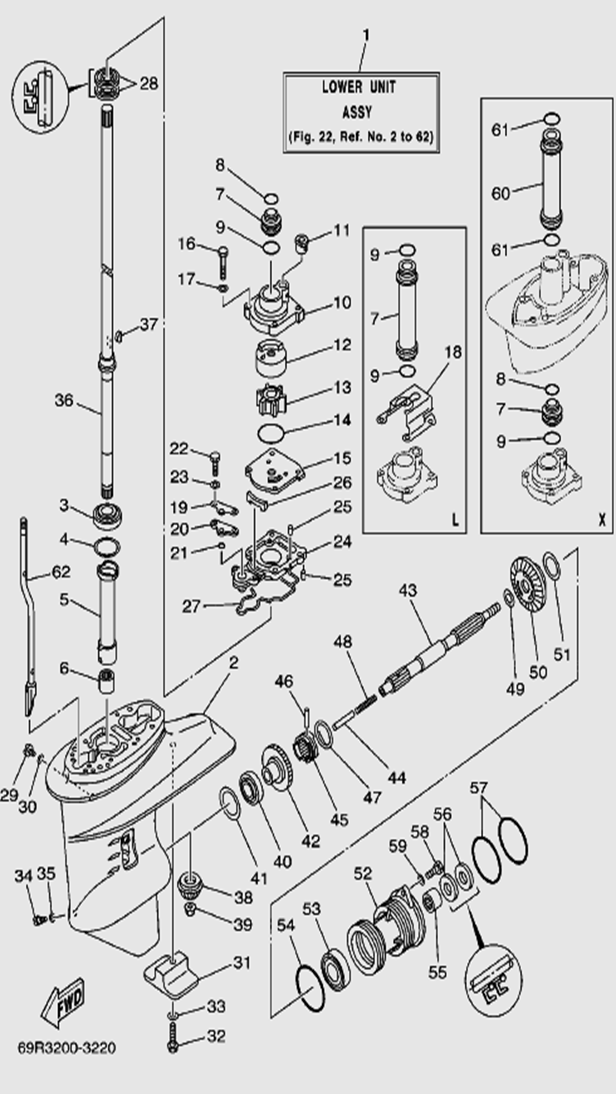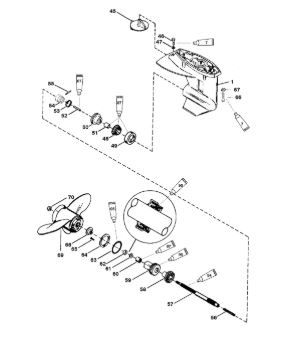 Корпус шестерни (карданный вал) 2-Х ТАКТНОГО ПЛМ MERCURY 50EO Серийный номер от 0D000750 до 0G290584