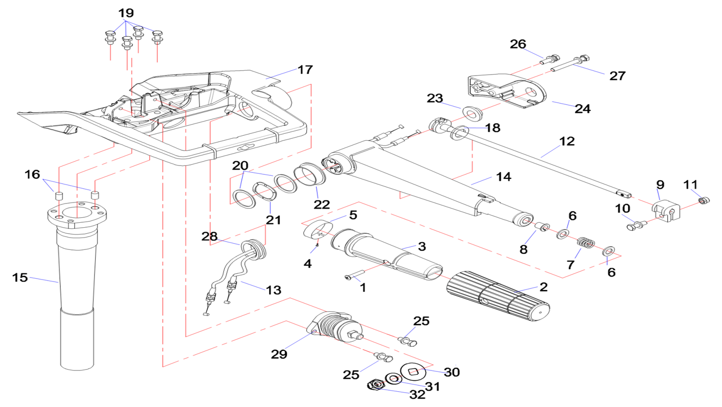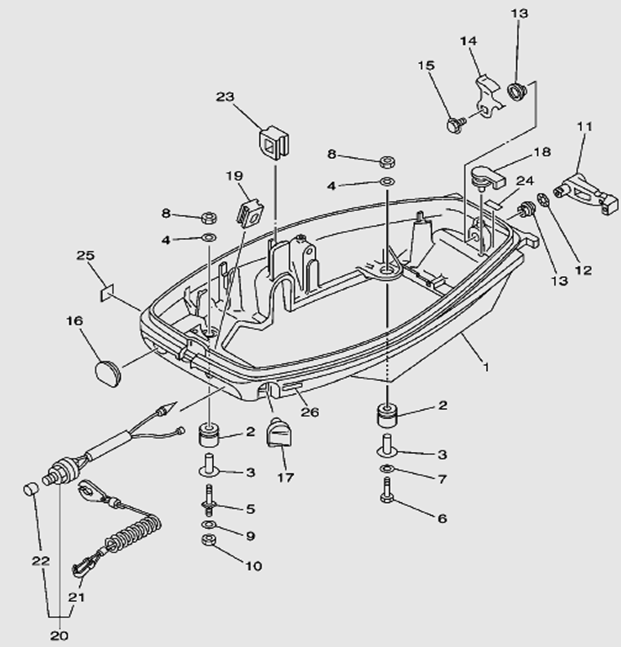 Дистанционное управление 2-Х ТАКТНОГО ПЛМ MERCURY 15 MH 294CC Серийный номер от 0N001590 до 0N055284
