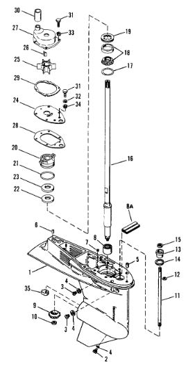 Удлинитель корпуса приводного вала 2-х тактного ПЛМ MERCURY Jet 25 Серийный номер от 0N088578 и выше