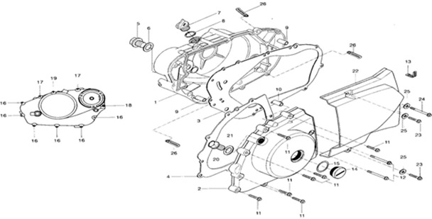 Блок цилиндров и картер (Часть 2) 2-Х ТАКТНОГО ПЛМ MERCURY 50EO Серийный номер от 9885345 до 9973099