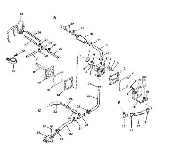 Цилиндры и гидравлические шланги 2-Х ТАКТНОГО ПЛМ MERCURY 50EO Серийный номер от 7208333 до 0A721307