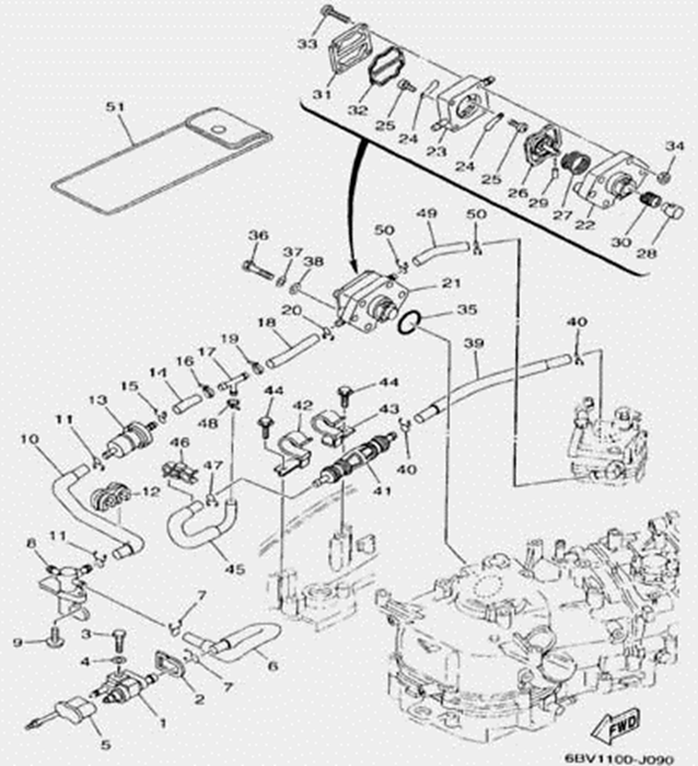 Цилиндры и гидравлические шланги 2-Х ТАКТНОГО ПЛМ MERCURY 50EO Серийный номер от 6428681 до 0B122929