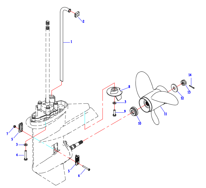 Корпус шестерни (карданный вал) 2-Х ТАКТНОГО ПЛМ MERCURY 50EO Серийный номер от 0B122930 до 0D000749