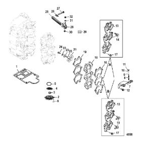 Комплектующие для прокладок двигателя 2-х тактного ПЛМ MERCURY 5 M Серийный номер от 0T894439 и выше