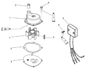 Компоненты водяного насоса двигателя 2-х тактного ПЛМ MERCURY 30 M Серийный номер от 0N055505 и выше