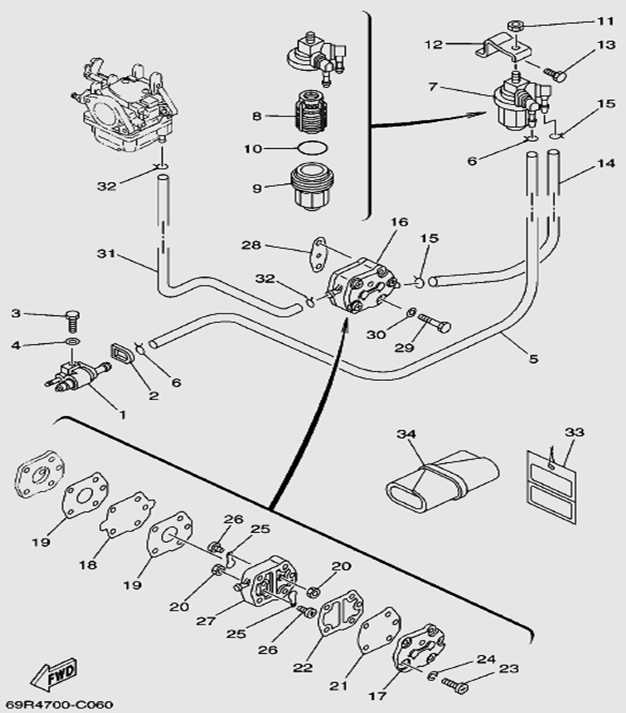 Топливный насос (белый или красный) 2-Х ТАКТНОГО ПЛМ MERCURY 60 Серийный номер от 9683055 до 9885344